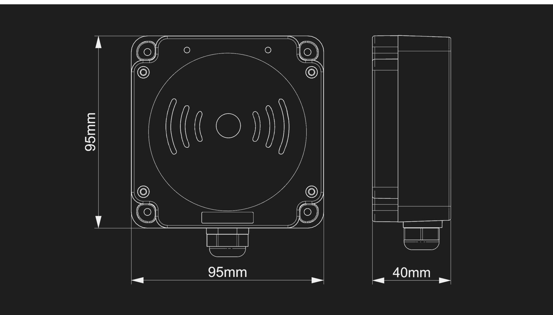 | ขนาด | 95(ยาว)*95 (กว้าง)*40(สูง)มม. | เสาอากาศโพลาไรซ์แบบวงกลม 3dBi (ในตัว) | ||